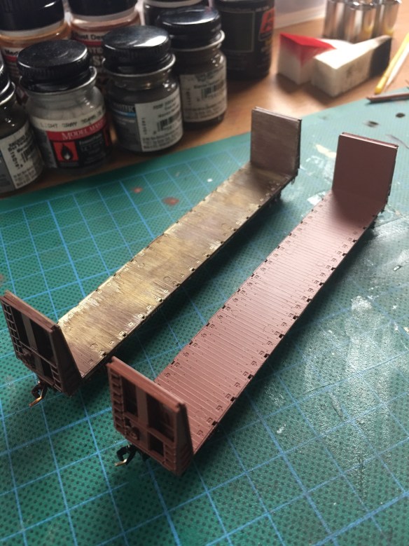 Then i weathered these two micro trains N scale bulkhead flat cars.