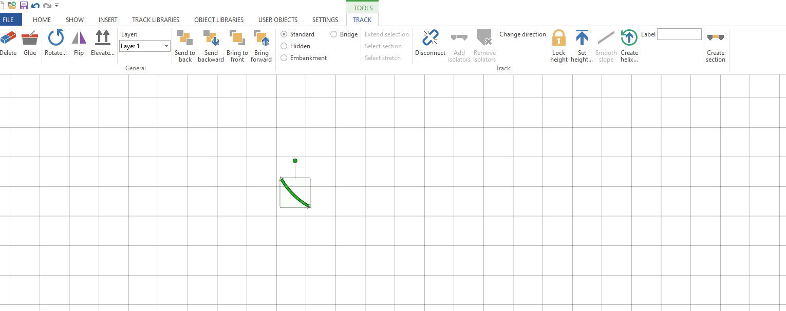 If you have set the height of your layout then enter that as the start point height.If you haven’t then set to 0 if you enter a height thats different to the height of the track you are trying to connect to then AnyRail will prevent you connecting those sections of rail. Imagine its like having one piece of rail on a table and the other on the floor looking down it may appear you can connect them but there is vertical seperation. As we are now adding a Helix to our layout we need to remember to think in 3 dimensions.